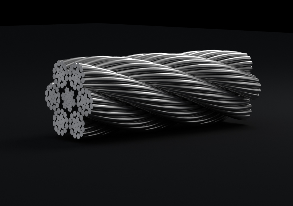 鋼絲繩由多根鋼絲按照一定的規則捻制而成的繩索。由制繩鋼絲、繩股、繩芯和繩用油脂組成。